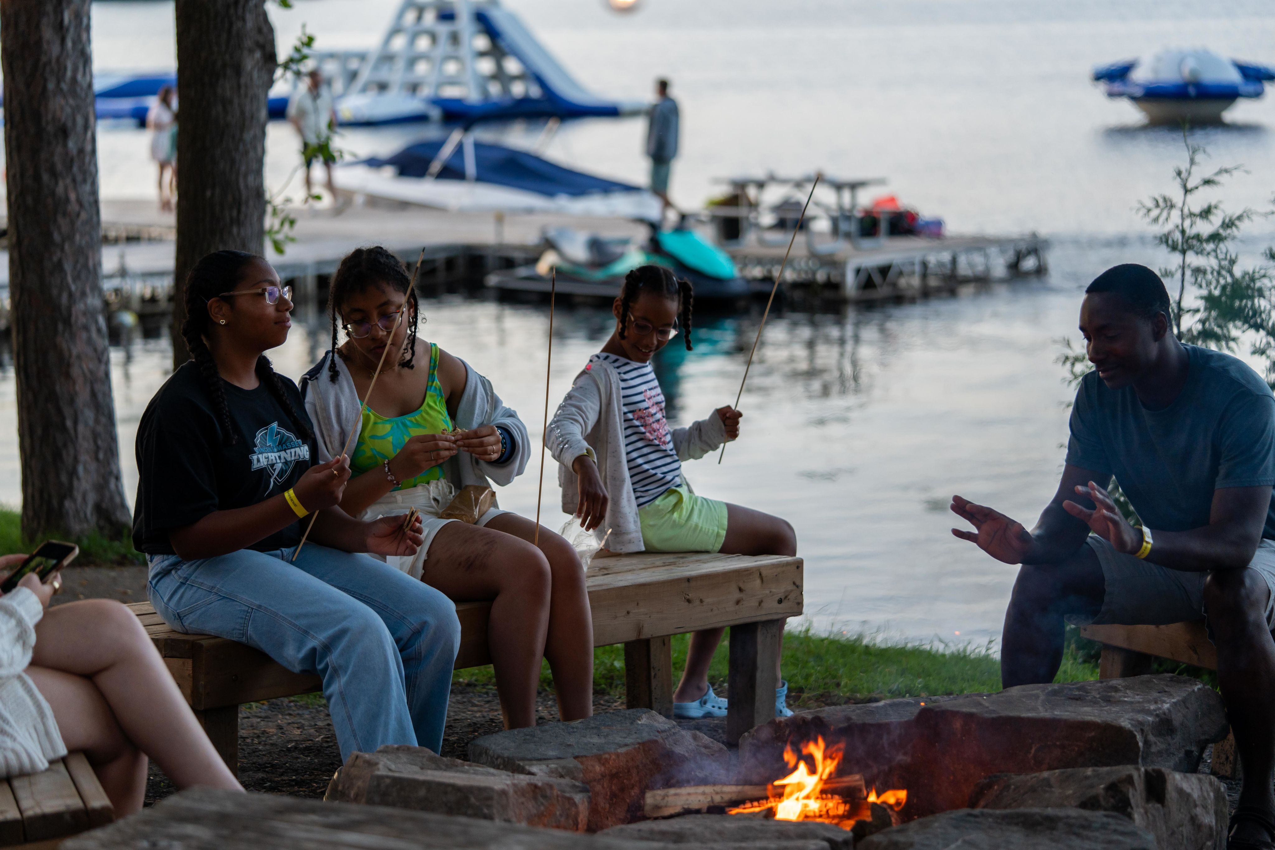 At Elmhirst’s Resort, evening bonfires and waterfront gatherings offer a steady closing note to the day. And at Bondi Cottage Resort, casual dock time and campfires create a rhythm families can return to night after night.