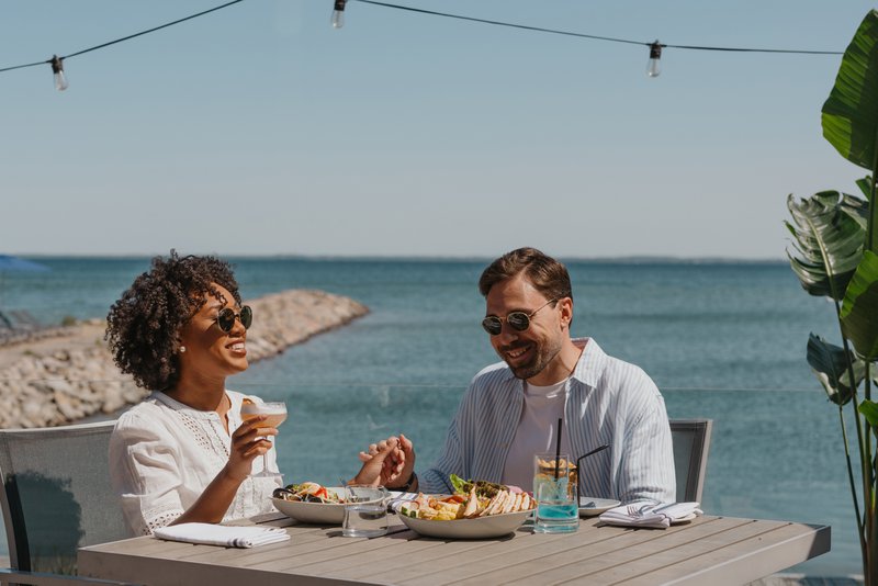 Dining at Rawley Resort is centred around Lighthouse45, the resort’s on-site restaurant overlooking the water. The dining room is designed as a focal point of the property, offering a full-service experience that encourages guests to remain on site for meals. Views over the water and a spacious indoor layout make the restaurant a natural gathering place.